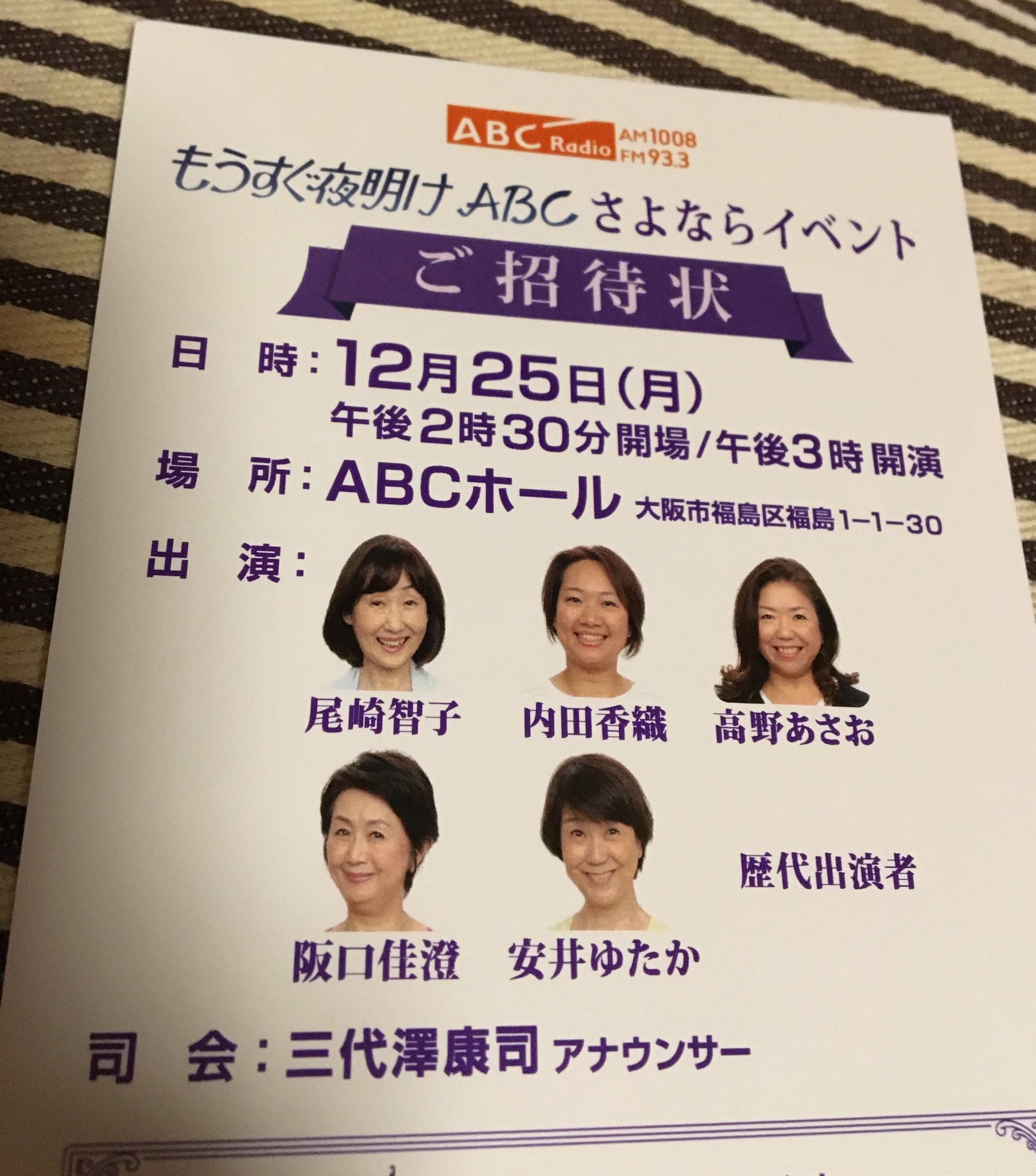 白鳳 ハクホウ Auf Twitter Abc朝日放送の深夜生番組 もうすぐ夜明けabc 34年のながきに渡って放送されてきましたが年末で終了 それに伴って25日 月曜日 にさよならイベントが催されます 招待者250名抽選に当たりました この様子は1 7 日 の深夜に放送され